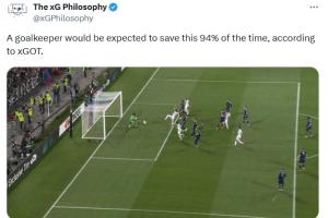 背锅数据机构分析:奥纳纳被绝平丢球应有94%概率扑救成功
