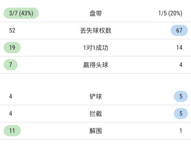 双方全场技术统计