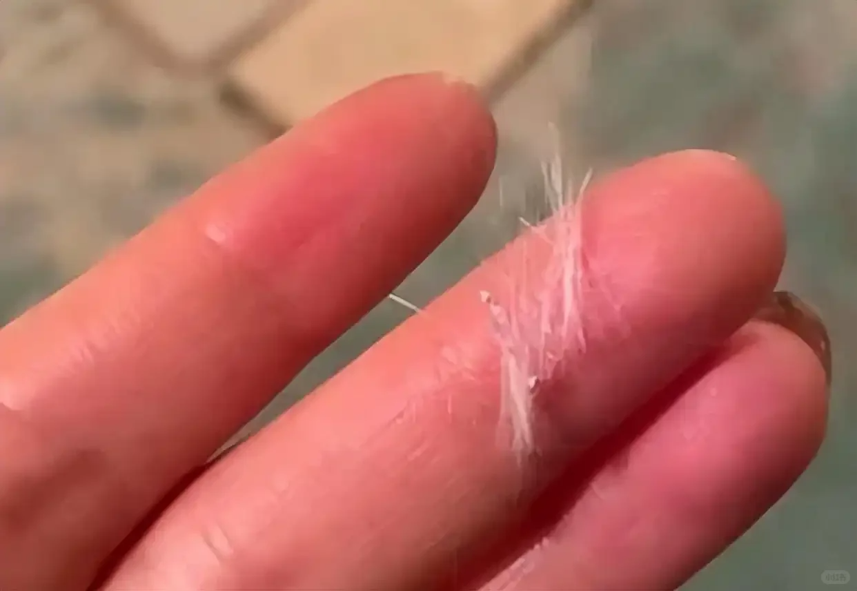 里面的玻璃纤维同样会暴露在外面,很可能被揉进面团,最后被我们吃到肚子里,或者触碰到手也会扎进皮肤。