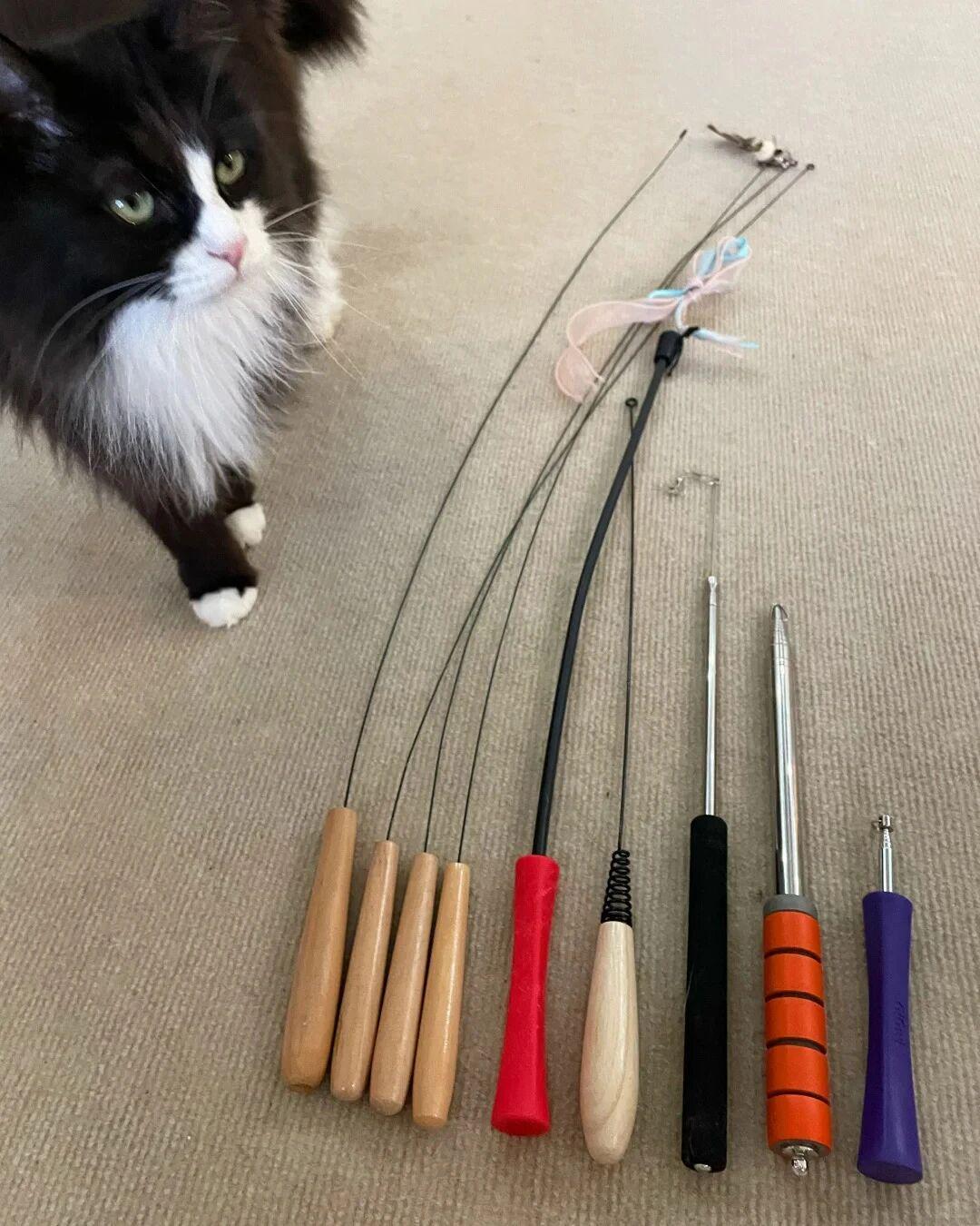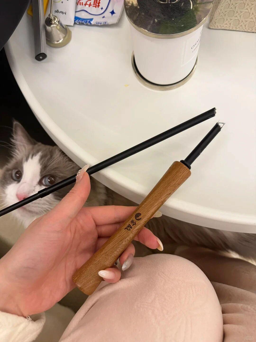 因为动毛干的特性,它比较软,而且韧性很好,其实这种逗毛杆的材质就是玻璃纤维制成的。