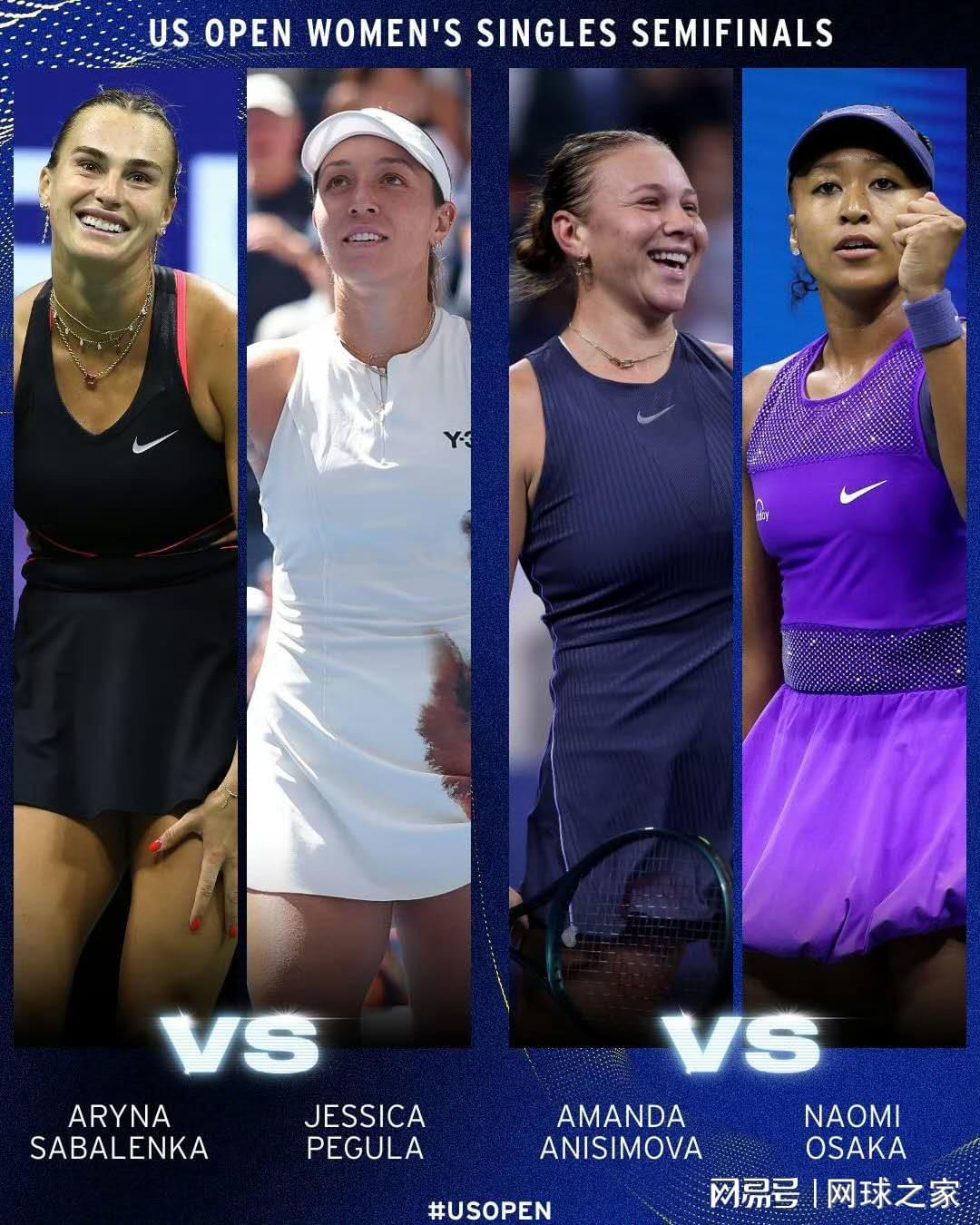 经过连续两日的厮杀,美网男女单四强选手产生。女子方面,温网冠军斯瓦泰克被阿尼西莫娃复仇成功,大坂直美也第五次杀进大满贯四强,与本土球员佩古拉以及世界第一萨巴伦卡会师四强。
