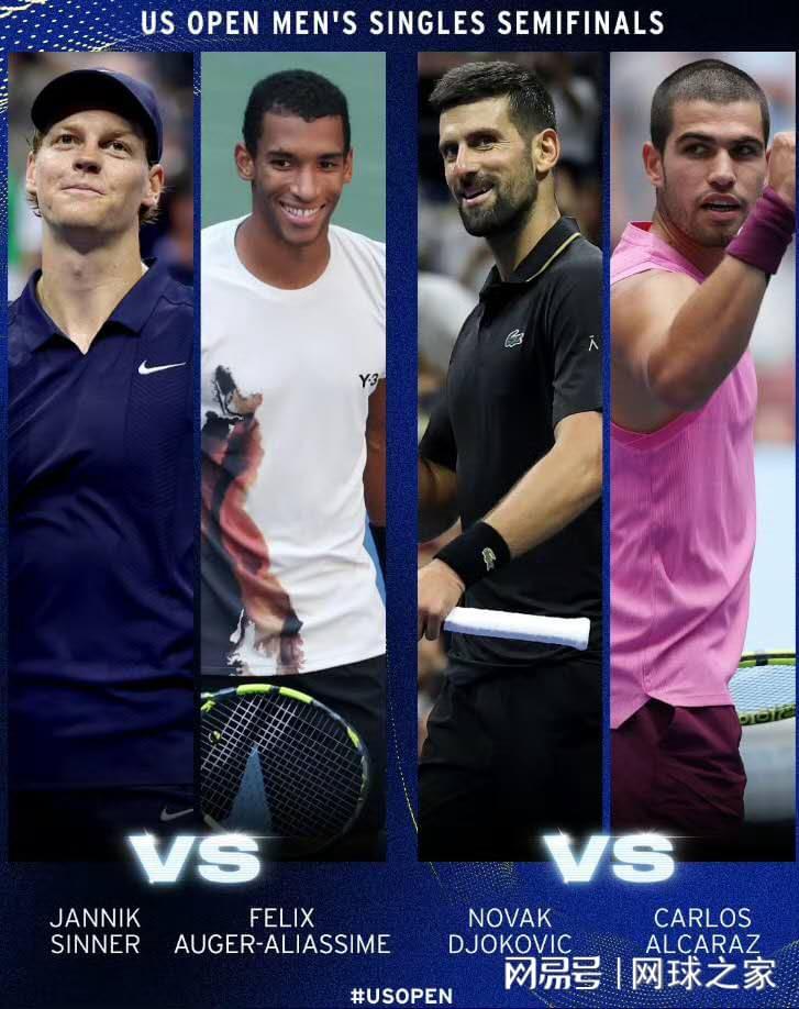 男子方面,辛纳、阿卡和德约挺进四强,自然是众望所归,而唯一剩余的一席,在前赛会亚军、世界第三兹维列夫被淘汰后,其所在的四分之二区成为开放区。原本被认为最有可能出现在四强的卢布列夫和德米纳尔,却双双在这场竞争中出局,无缘创造个人大满贯最佳成绩,最终挺进四强的是阿利亚西姆。